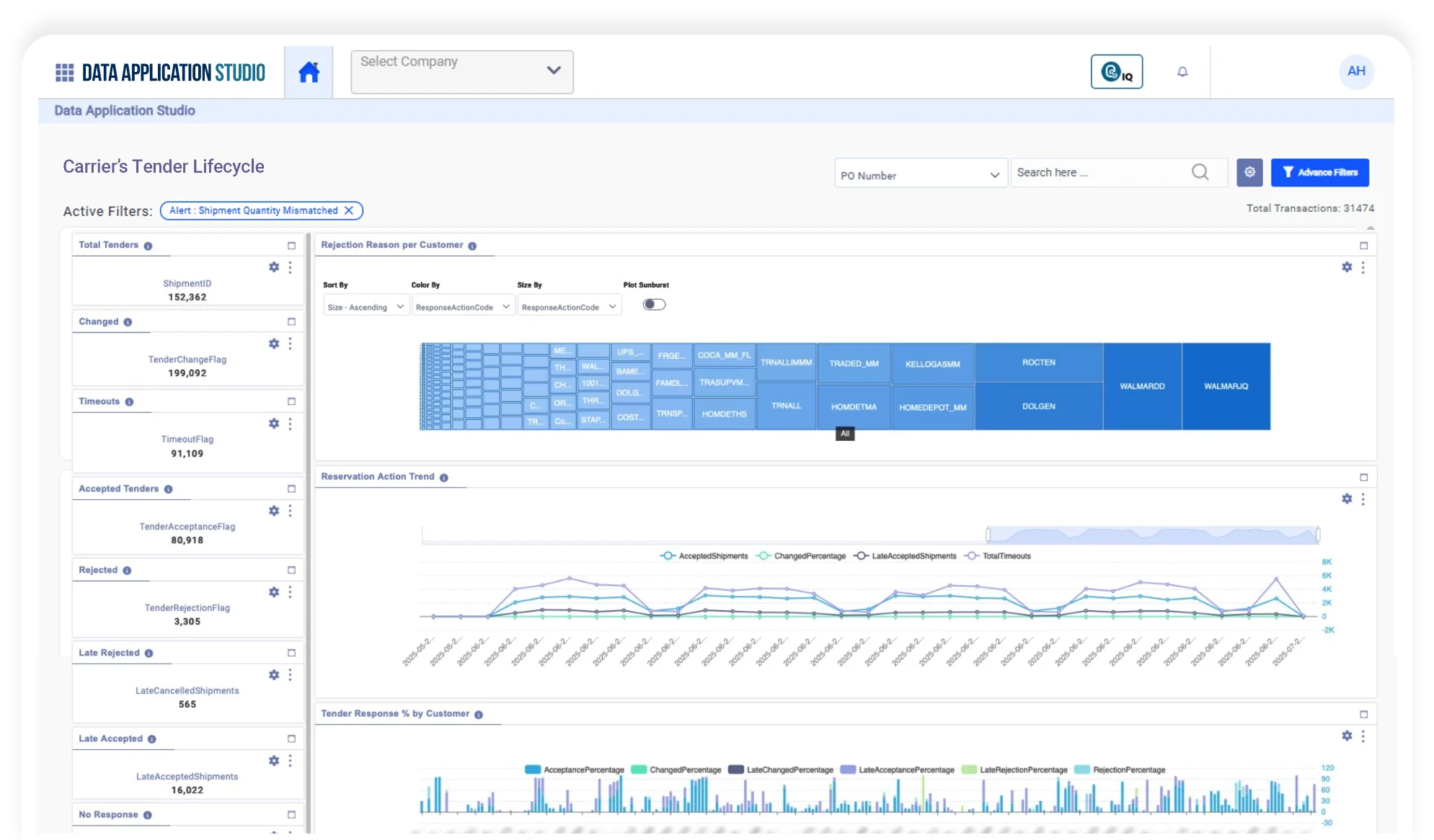 Request a Demo →Critical for carriers and 3PLs, this solution provides complete visibility from the customer’s load tender request to the final proof of delivery and invoicing. It enables sales and logistics planning teams to manage customer demand trends and optimize their tender acceptance strategy.