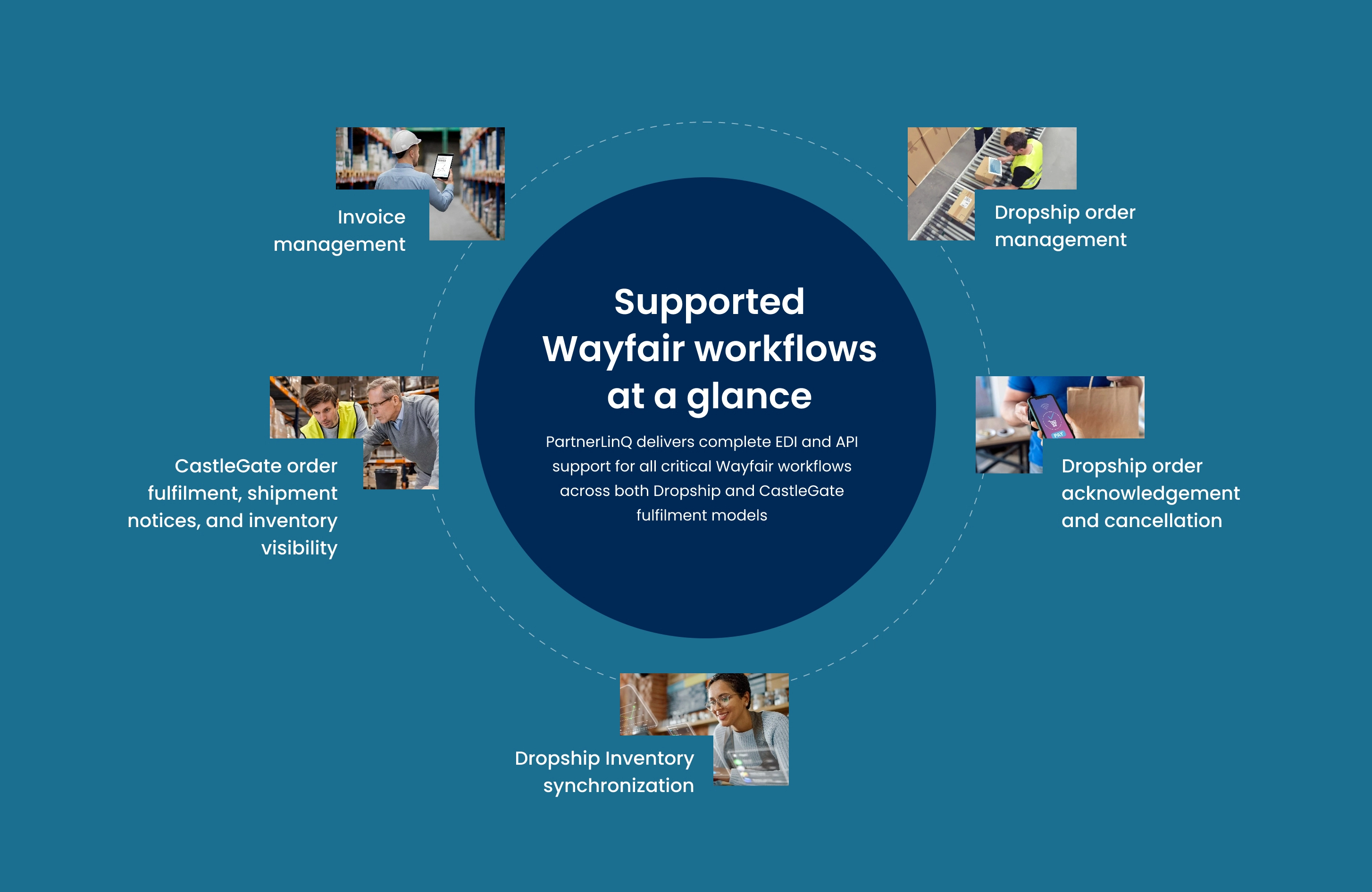 Fully approved to support all essential EDI & API transaction sets required by Wayfair, including Dropship and CastleGate