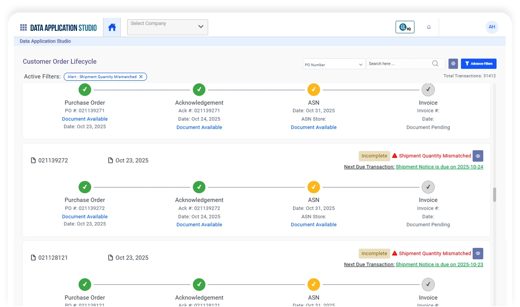 Gain visibility across Order Fulfillment (Warehouse Ship Request/Confirmation - EDI 940/945) and Order Receiving (Warehouse Shipment Advice/Receipt Advice - EDI 943/944).
